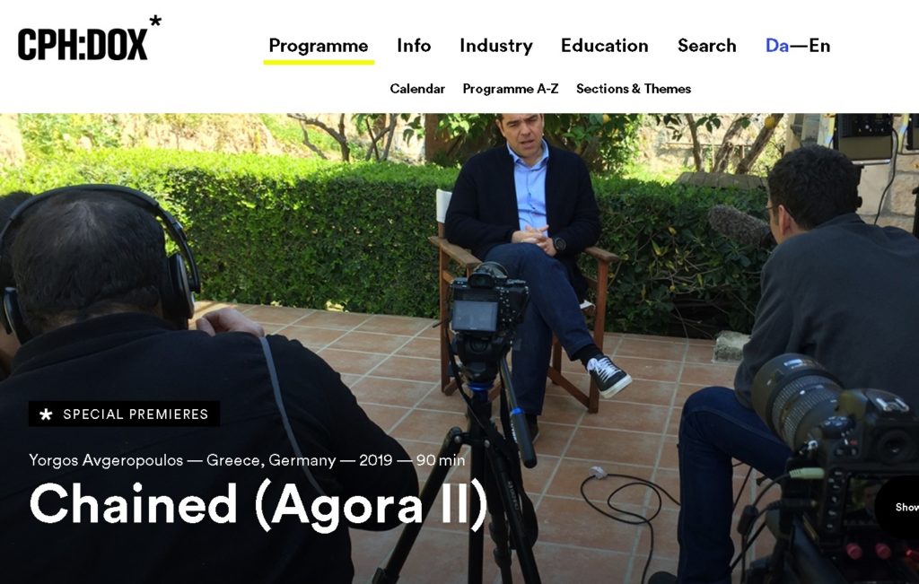 The international premiere of Chained (AGORÁ II), by Yorgos Avgeropoulos, will be held on March 23, 2020 at the international festival CPH:DOX 2020, in Copenhagen. The new film of SmallPlanet is part of the highlights of the festival, in the category Special Premieres, and the screening will be held with the presence of the filmmaker who will answer to the questions of the audience at the Q&A session that will follow. CPH:DOX, which is one of the most prestigious documentary festivals in Europe, in 2014 included in its official selection the first film of Yorgos Avgeropoulos for the Greek crisis, AGORÁ – From Democracy to the Markets.
